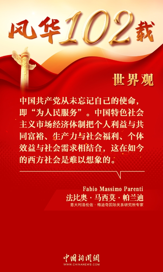 2023年是中国共产党成立102周年。帕兰迪表示,中国共产党从未忘记自己的使命,即“为人民服务”。中国特色社会主义市场经济体制把个人利益和共同富裕、生产力和社会福利、个体效益和社会需求相结合,这在如今的西方社会是难以想象的。